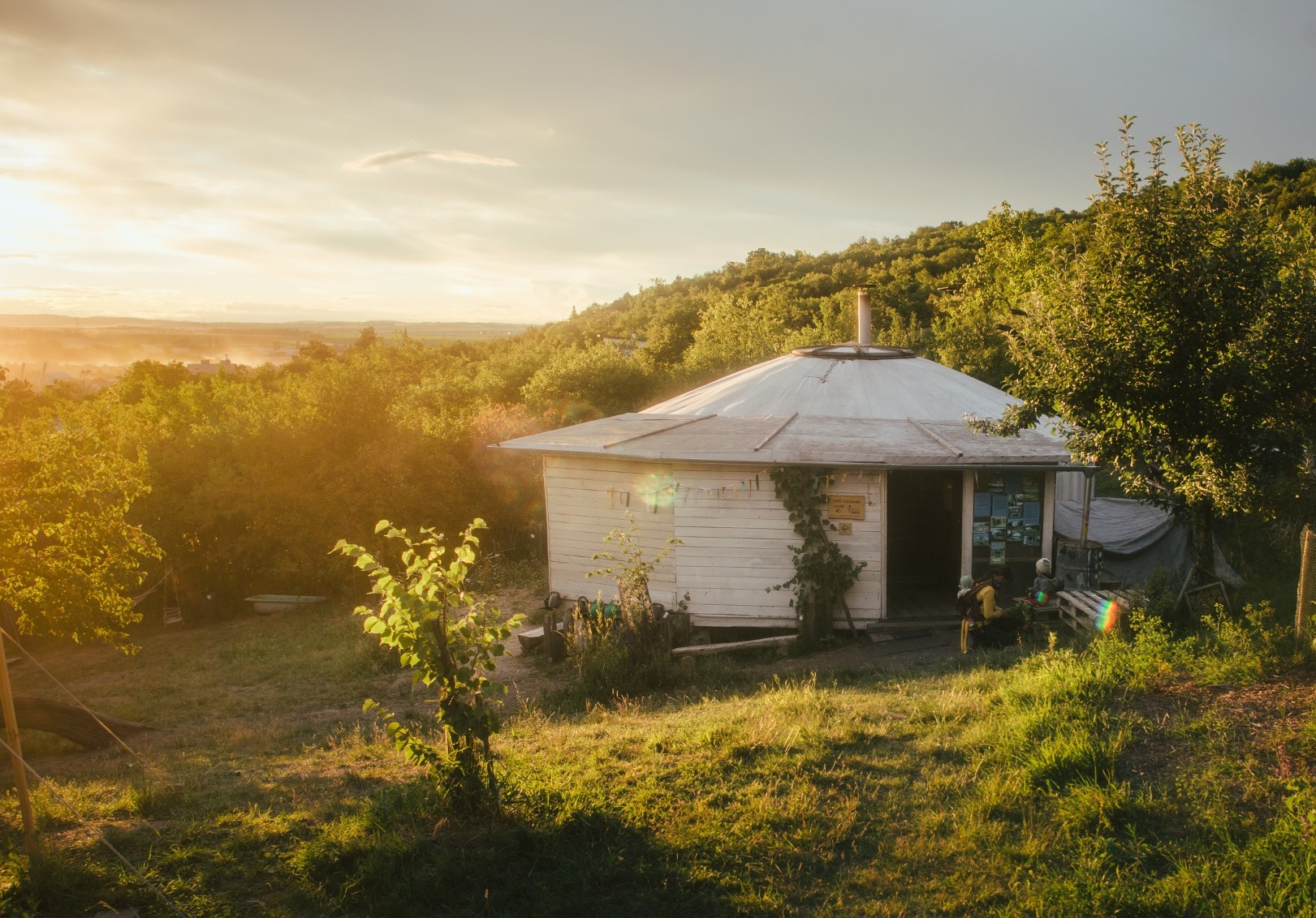 útulná jurta k odpočinku, hranice i bez plotů